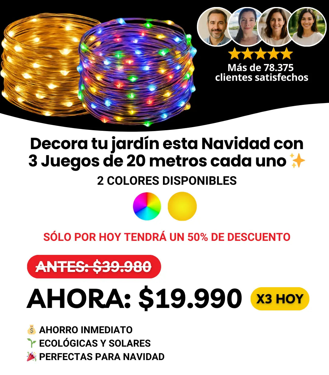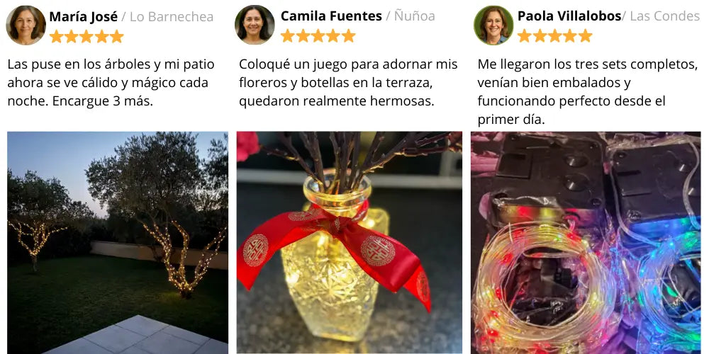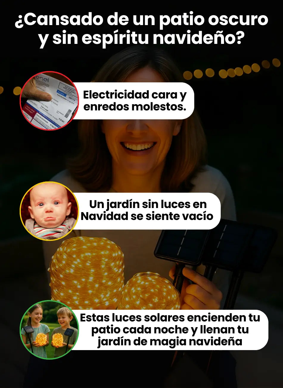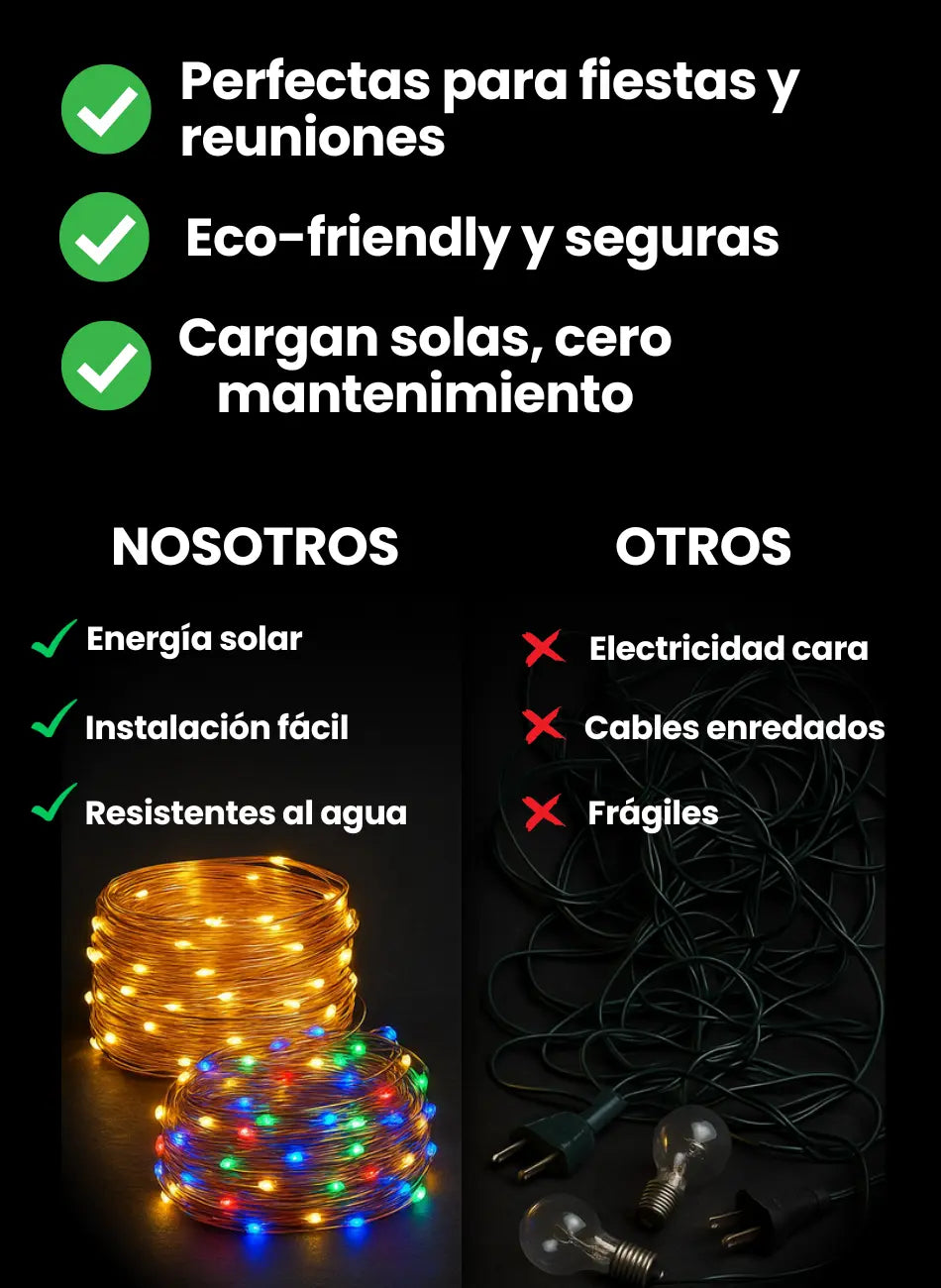 Sí, solo clava el panel solar o enreda las luces en barandas/árboles ¡y listo!