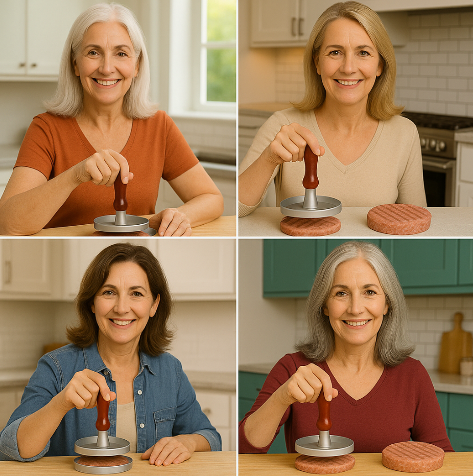 Ahora con las prensas, en minutos tengo hamburguesas perfectas, todas iguales y listas para tirar a la parrilla. ¡Me siento como un chef profesional en cada asado!