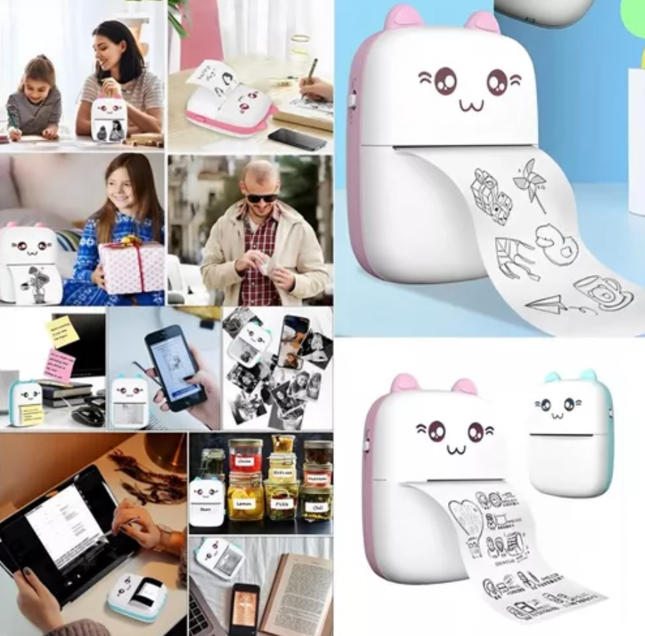 Deja de perder tiempo y dinero con impresoras tradicionales. La Mini Impresora Térmica Portátil modelo Gatito imprime sin tinta y con una calidad sorprendente. ¡Solo enciéndela y listo!
